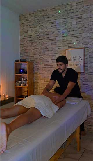 * Relaxante terapêutica * Tântrica sensual * Tântrica Nuru (corpo a corpo) * Liberação miofascial * Seitai – Quiropraxia japonesa (realinhamento postural e dores articulares)